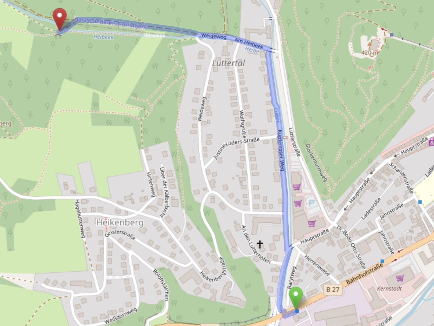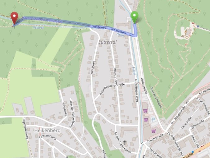 - Dann jeweils zum Wanderparkplatz in der Lutterstraße, von dort ca. 350 m Fußweg (siehe Kartenausschnitt).